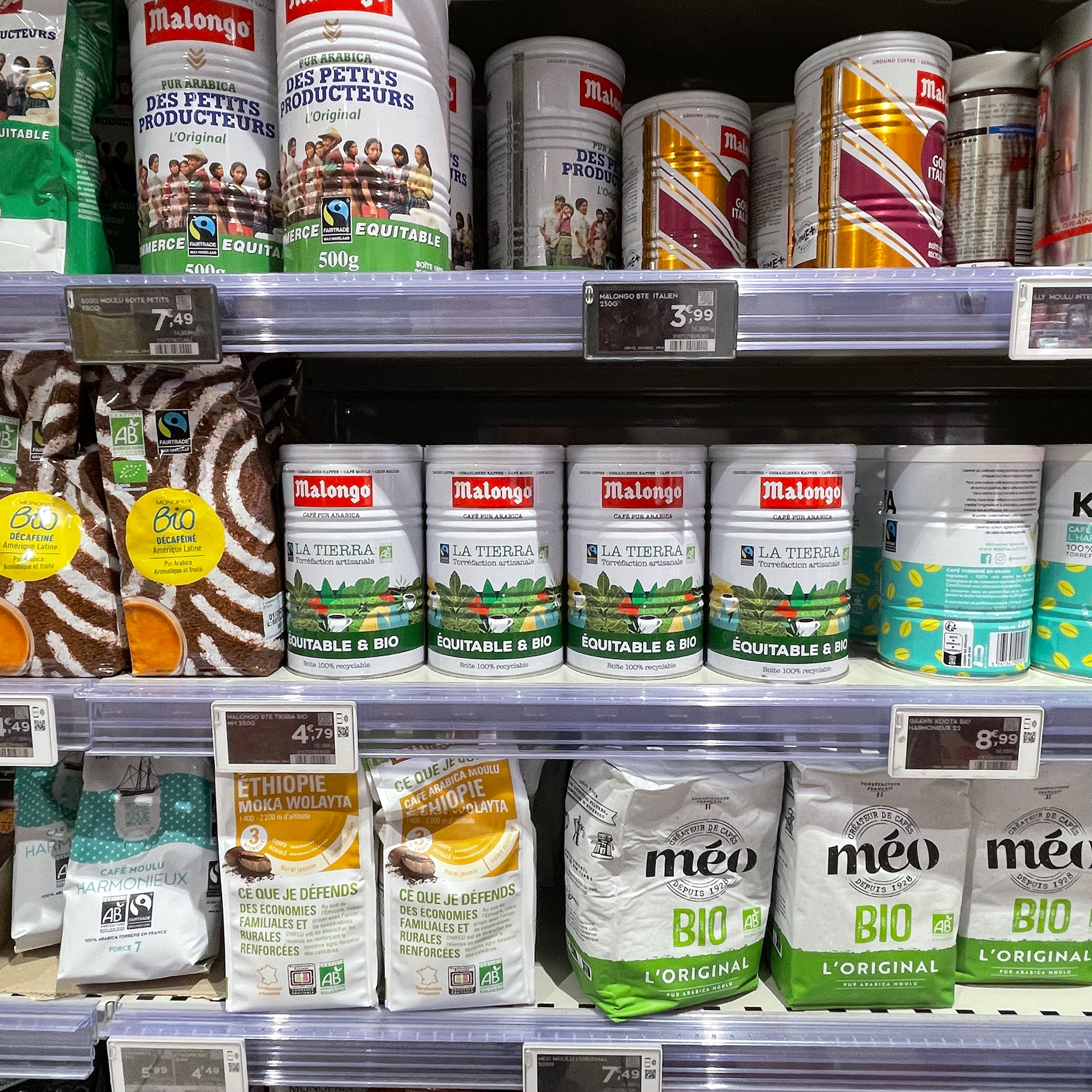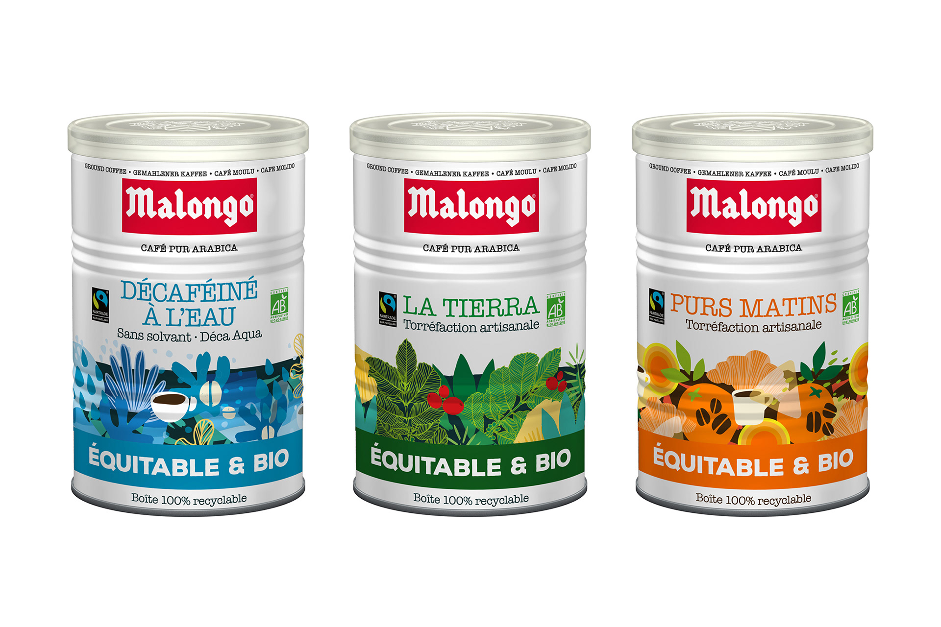 Création du design de la gamme Café Moulu 250g MALONGO pour la GMS (boutiques Malongo, Monoprix, etc…).